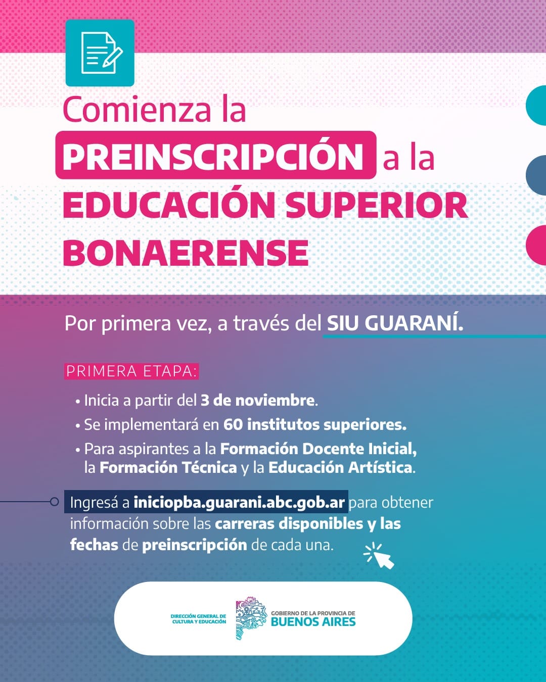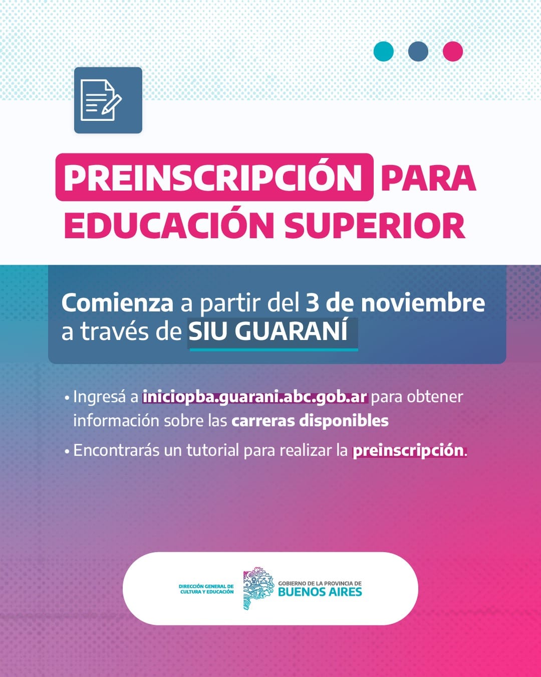 - Pagina para ingresar iniciopba.guarani.abc.gob.ar para la información sobre las carreras disponibles