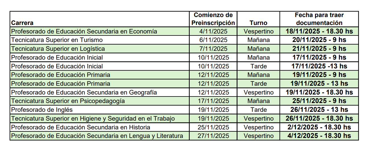 Informamos las fechas de la pre inscripción para las carreras de nuestro instituto.
