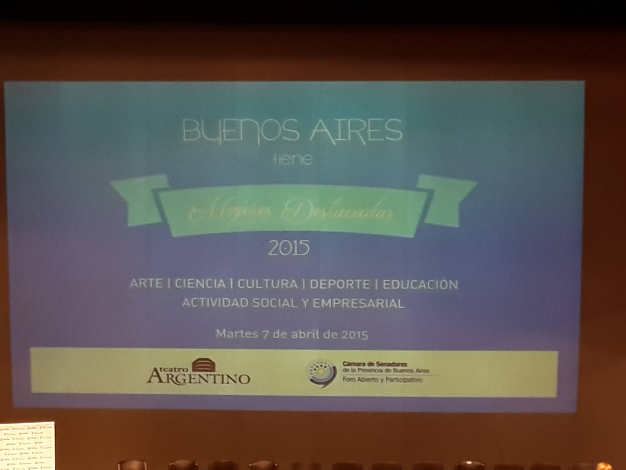 El día 7 de abril de 2015 se realizó en el Teatro Argentino de la ciudad de La Plata un acto organizado por el Senado de la Provincia de Buenos Aires en reconocimiento a la Labor de Mujeres Destacadas 2015 de la Provincia de Buenos Aires.